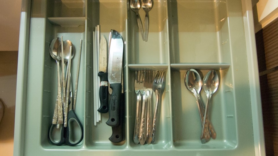 서랍을 열어보시면 저희가 미리 준비해둔 집기를 보실 수 있어요.